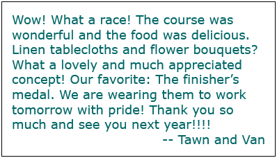 A special thanks to everyone at RYKA who helped make this event so memorable! There was so much heart & dedication put into every little detail--it really meant so much to us!! The course was exciting and challenging! What a thrill to cross the finish line--I shed tears of relief, sheer joy & complete exhilaration! As soon as my friends & I crossed the finish line, we all said, "Wow! Let's do this again next year!" Thank you, Ryka, for believing in us & making this day possible! -- Maria Slowey-Johnson |